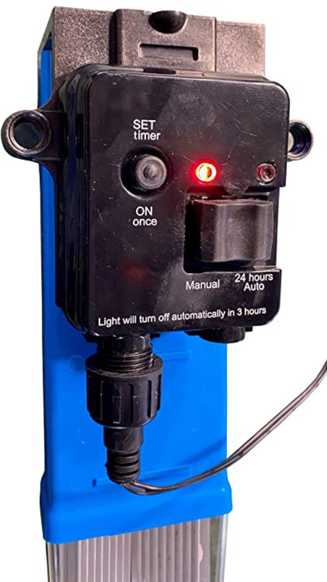 Switch to “Manual” to turn on light as needed per day or switch to “Auto” to set a specific time for the light to automatically turn on everyday.